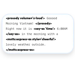 Control speech flow with SSML tags and set the perfect tone for your content.