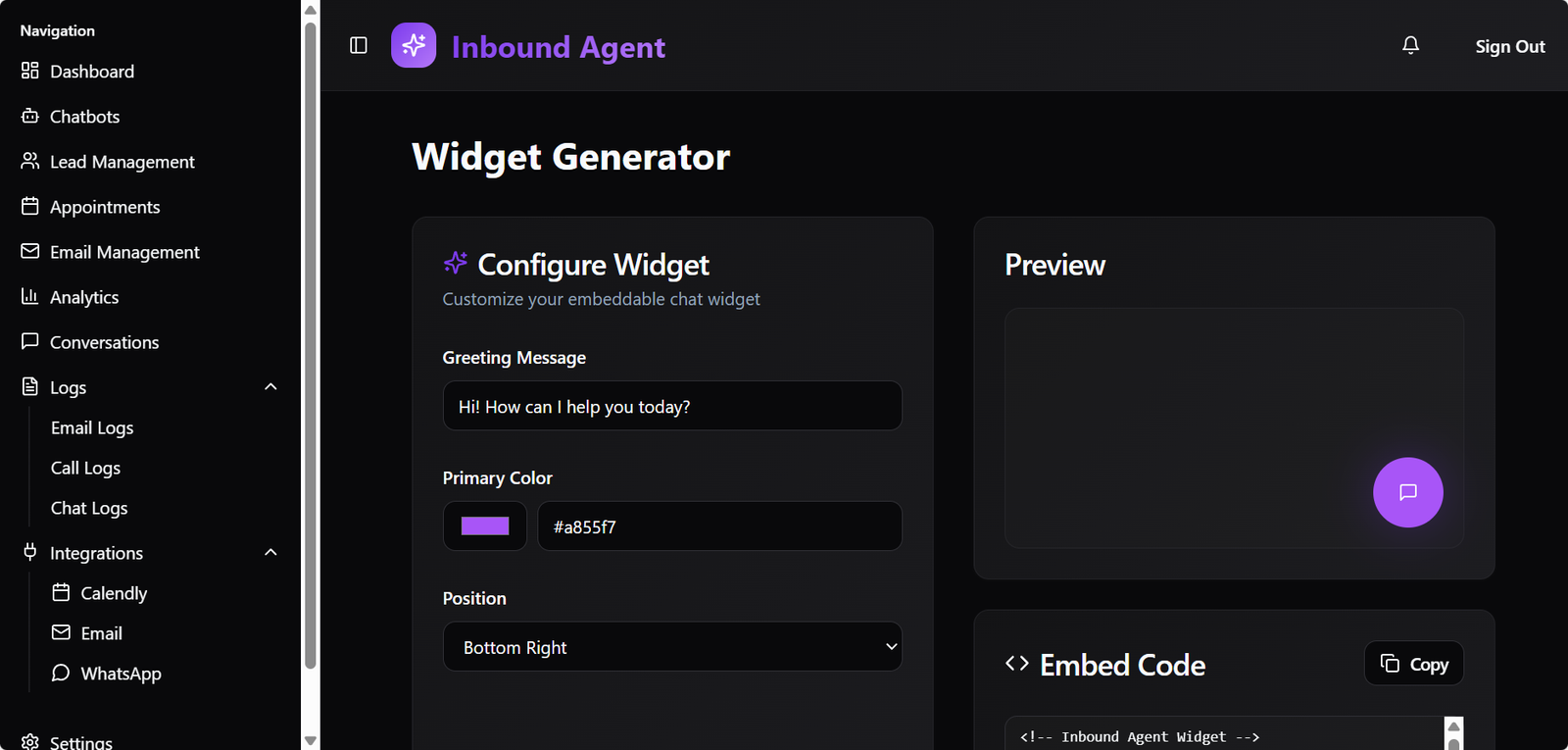 You can deploy any of our 6 agents in under 10 minutes. Choose your agent type (Inbound, Outbound, Appointment, Receptionist, Social, or Omnichannel), upload your business data, and go live. No coding required.